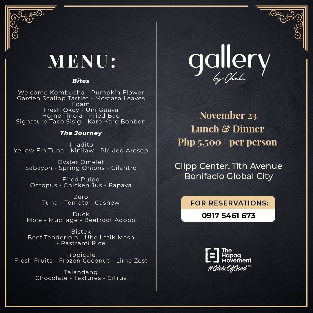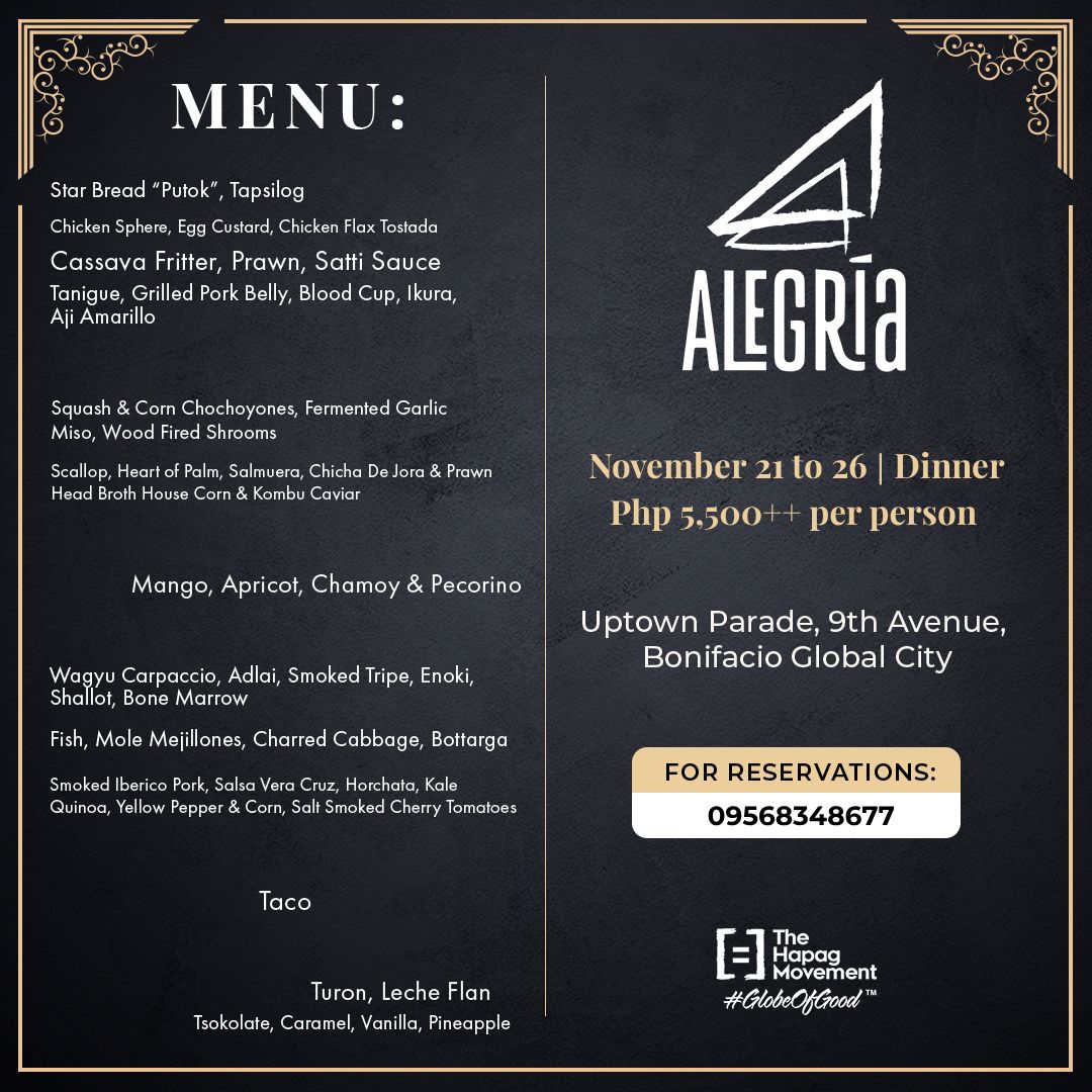 Alegria Manila and Gallery by Chele are participating in the heartwarming initiative of Globe and Fining Dining Club Philippines Facebook community this November. A portion of the proceeds will be used to support the fight against involuntary hunger in the country.