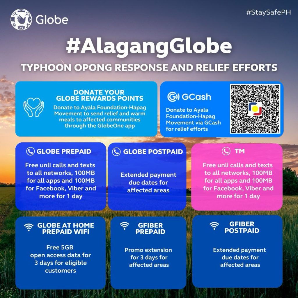 Customers may also donate Globe Rewards points or via GCash to the Ayala Foundation-Hapag Movement through the GlobeOne app to support ongoing relief efforts.